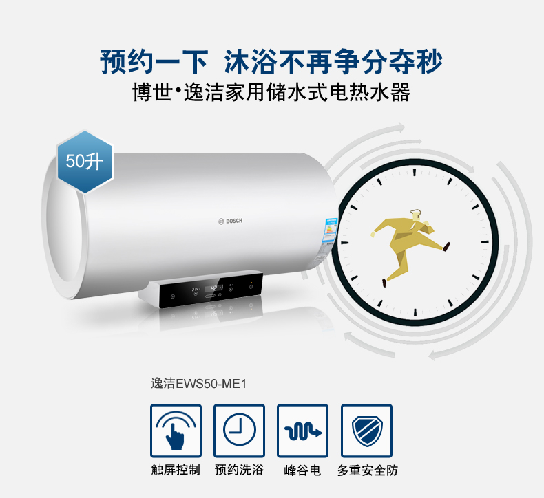 電子式控制,觸摸按鍵。可選容積為50L/60L/80L。