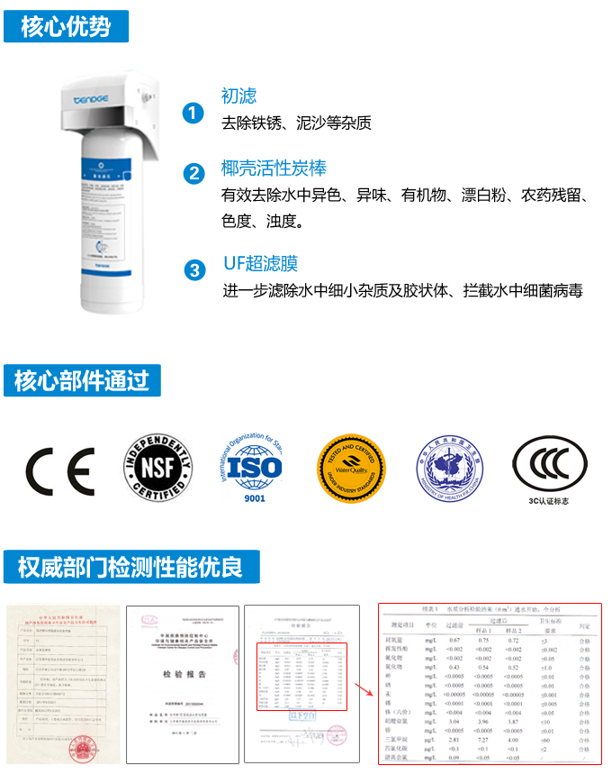 有效去除水中的異色、異味、余氯、細(xì)菌病毒等;同時保留對人體有益的礦物質(zhì)。可用于燒飯、燒湯、喝水、洗水果等。
