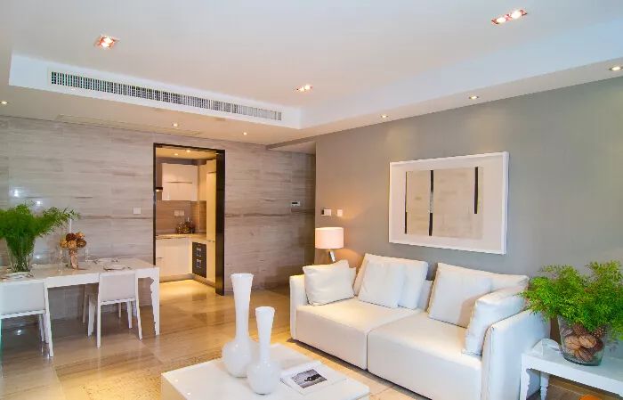 第四個誤區:空間低不適合裝中央空調很多人以為房子層高太低,不適于裝中央空調。其實不然。房子的層高一般在2.6-2.9米不等,比較適合裝中央空調。但如果公寓層高不夠,有些區域面積又小,也可以考慮把室內機安裝在對層高要求不高的相鄰空間的吊頂內,比如:走道、更衣室、廚衛等地方。